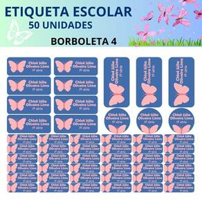 Adesivo Etiqueta Escolar Personalizado Vinil Borboleta 50 UN - Cor: BORBOLETA 4