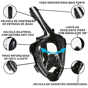 Nossa Mascara Subaquática de de Mergulho Gold Sports Sea Full Face Com Snorkel é muito mais longo do que a versão antiga, por isso é mais fácil de desmontar e respiração mais suave.Nosso suporte de câmera de máscara de snorkel é ajustável e móvel, você pode liberar para ajustar a altura. Enquanto o suporte da câmera da versão antiga é corrigido lá. A máscara de mergulho é feita de silicone líquido, é ambientalmente correta e anti-alérgica. Enquanto antes versão é feita de silicone normal. Nossa máscara quando você mergulha a válvula fecha automaticamente sem deixar entrar a água. Respirando naturalmente, a máscara de snorkel facial é muito mais fácil de usar do que a tradicional com o tubo respiratório com dupla entrada e 2 bolas de vedação quando submersa. Sua lente panoramica posui uma area de de 180 graus de visulaização. A Máscara full face snorkel deixá-lo tirar mais proveito de suas aventuras subaquáticas. Headband ajustável do tecido elástico, fácil de usar e adequado para todos os tipos de forma da cabeça. Mais fácil do que nunca respirar confortavelmente pela boca ou nariz enquanto você está mergulhando Design de fluxo de ar duplo, respirando mais suavemente, qualquer pessoa que não queira respirar suavemente ao mergulhar. Possui um novo sistema de dupla válvulas bilaterais e unidirecional de exalar co2 tornando sua lente anti-embaçante. Máscara com Snorkel:1 peça Plugue auricular:1 par Mesh Bag:1 peça Manual do usuário:1 peça Marca: Gold Sports Garantia: 01 mês contra defeito de fabricação material: Silicone liquido, poli carbonato, PVC e Poliester