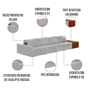 O Sofá Ilha 4 Lugares Living Lary de 512 cm é uma peça de destaque para qualquer ambiente, com um design moderno este sofá apresenta uma estrutura modular permitindo reorganizá-la criando um layout personalizado. Revestido no luxuoso tecido Veludo, proporcionando uma sensação de aconchego e sofisticação. Seu assento é fixo em espuma D-26 com multimolas de sustentação espiral e ensacadas, solda dupla, manta acrílica e percintas elásticas, suportando até 150 kg por assento. Já o encosto possui espuma D-23 sendo ele removível, com almofadas soltas preenchidas com 100% de fibra siliconada, proporcionando um apoio macio para as costas. Os pés são feitos em madeira certificando maior estabilidade ao móvel. Este sofá apresenta características de alta qualidade, incluindo uma estrutura de madeira tratada de eucalipto reflorestada, garantindo maior resistência e durabilidade ao produto, além de contribuir para a sustentabilidade ambiental. Com nove assentos no total, um deles revestido em tecido Sintético Pu Nozes com detalhes em gomos feito com a técnica de costura pespontos, este sofá oferece espaço suficiente para acomodar confortavelmente até dez pessoas, tornando-o ideal para receber amigos e familiares com estilo e conforto. Pode ser utilizado em escritórios, restaurantes e demais ambientes corporativos.O Sofá Lary é a escolha perfeita para quem busca uma peça de mobiliário que une funcionalidade, conforto e estilo em uma única solução para o seu ambiente. Aproveite!
