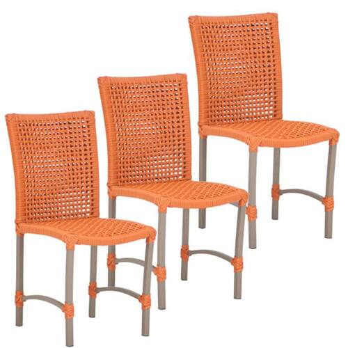 3 Cadeiras Cannes Corda Náutica em Alumínio Trama - Preto