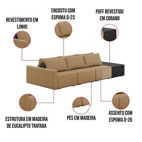 Diferenciais: Sofá modular, estilo ilha, pode ser aproveitado assentos em ambos os lados. Acompanha almofadas. Ideal para sala de estar, living e ambientes integrados