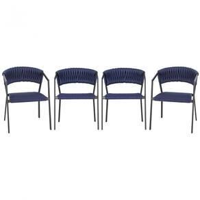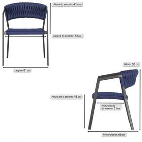 4 Cadeiras Atenas Tricô Náutico e Alumínio com Proteção UV para Varanda, Cozinha, Área, Jardim - Pintura Preto - Azul Marinho