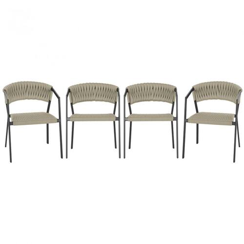 4 Cadeiras Atenas Tricô Náutico e Alumínio com Proteção UV para Varanda, Cozinha, Área, Jardim - Pintura Preto - Bege