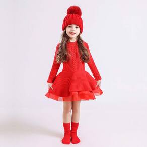 Vestido Infantil Menina Choche Lã Trico Festas Manga Longa