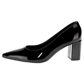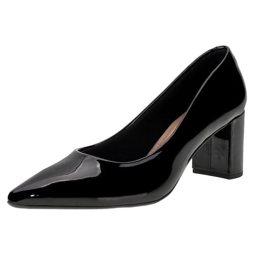 O Sapato Feminino Salto Grosso Beira Rio é confeccionado em material envernizado premium, acabamento em costura, forro interno em têxtil, palmilha em PU e solado em borracha com salto médio de sete centímetros.