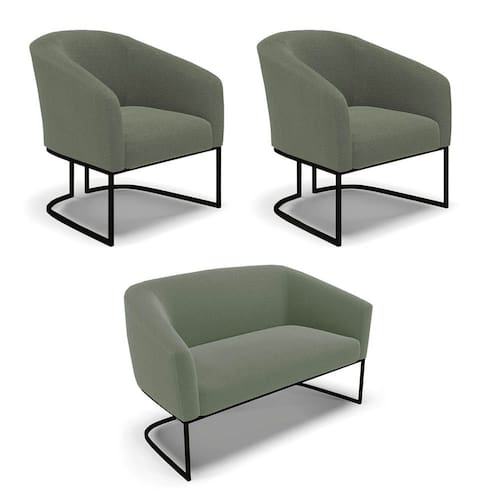 Sofá Namoradeira e 2 Poltronas Base Industrial Preto Stella Bouclê D03 - D`Rossi - Verde Cinza