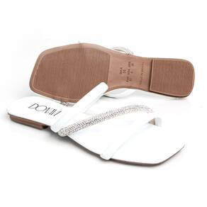 Sandália Rasteirinha Casual Feminino Tiras Brilho Moda Elegante Prática - 35 - Branco