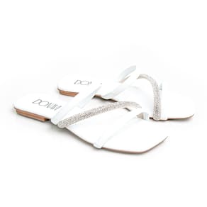 Sandália Rasteirinha Casual Feminino Tiras Brilho Moda Elegante Prática - 36 - Branco