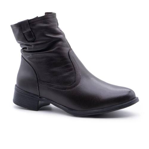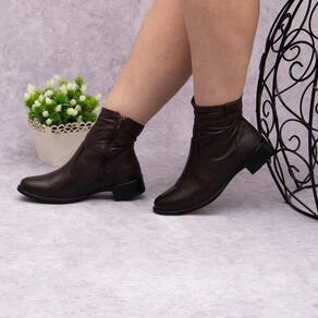 Bota Feminina Couro Cano Curto Zíper Lateral Casual Moderna - 35 - Marrom Chocolate