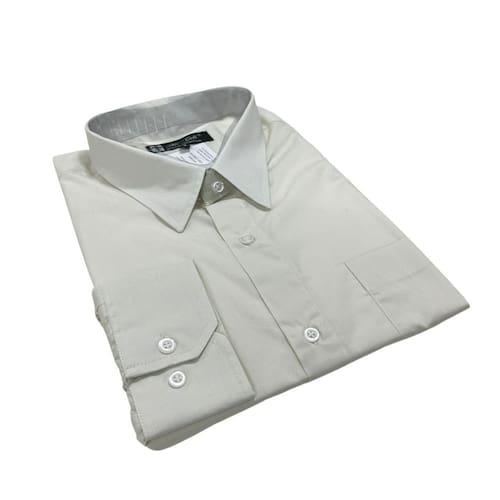 Camisa Social Masculina Manga Longa 100% Algodão Fio 50 Cor Lisa Tam 6 ao 8 Plus Size - Bege - 6
