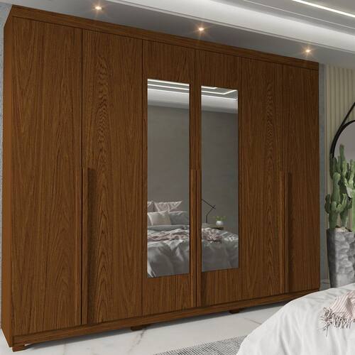 Características: Estrutura em MDP 6 Portas 4 Gavetas Corrediças telescópicas 4 Prateleiras Contém Espelho Sapateira inclinada Espaço para camisas e calças Puxadores longos em MDF Contém Pés