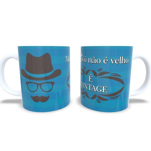 Caneca personalizada de porcelana de alto brilho, com interior e Alça branca Coleção Dia dos Avós.