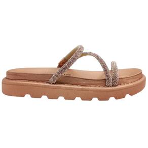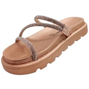 Confeccionada em material sintético de alta qualidade, garante maior durabilidade e resistência. Com seu design cuidadosamente elaborado, ideal para quem busca equilíbrio entre moda e praticidade. As tiras, abraçam o pé delicadamente, oferecendo um ajuste confortável, mas também adicionando uma dose extra de estilo ao visual. O destaque fica para as aplicações de strass ao longo das tiras, conferindo um toque de brilho e muita personalidade.