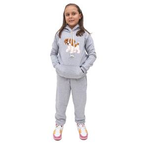 Conjunto Abrigo de Frio Com Calça Infantil Feminina Blusa Canguru Estampa de Cachorrinho Quentinho - Cinza - 8