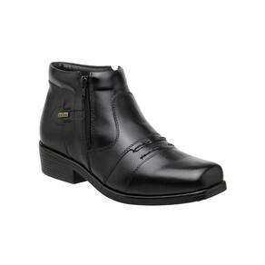 Botina Zebu Masculina Bico Quadrado, Confeccionada em couro Vacum na cor Preto, Solado de Borracha, Totalmente Costurada, Forrada em Couro com Palmilha Espumada de EVA