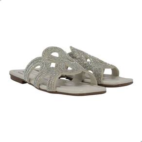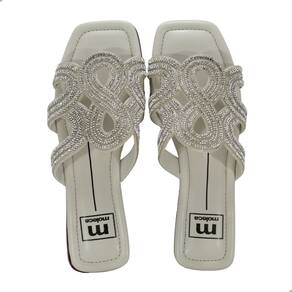 Tamanco Feminino Moleca Pedraria com strass Branco - 40 - Branco