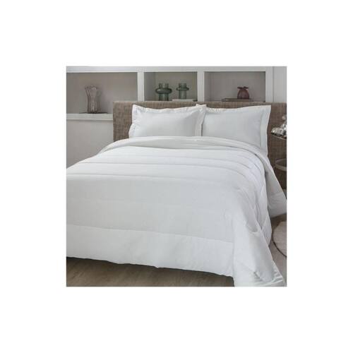 O Kit Cobre Leito Colcha Super King Kacyumara Confort Montez 300 Fios é fabricado em tecido 100% algodão e enchimento 100% poliéster proporcionando muito conforto e maciez para suas noites de sono serem ainda mais agradáveis e tranquilas. O porta travesseiro acompanha o mesmo design de cor sólida da colcha, também possui 4 abas que dão o acabamento perfeito para o travesseiro. - Contém:1 colcha 270cm x 320cm2 porta travesseiros 50cm x 70cm- Composição:100% Algodão 300 fiosEnchimento 100% poliéster- Fabricante: Kacyumara- Instruções de Lavagem:Esse é um produto de alta qualidade, e para aumentar a vida útil do seu produto, aconselhamos que siga rigidamente as recomendações de lavagem de acordo com a etiqueta do produto.