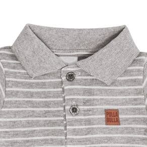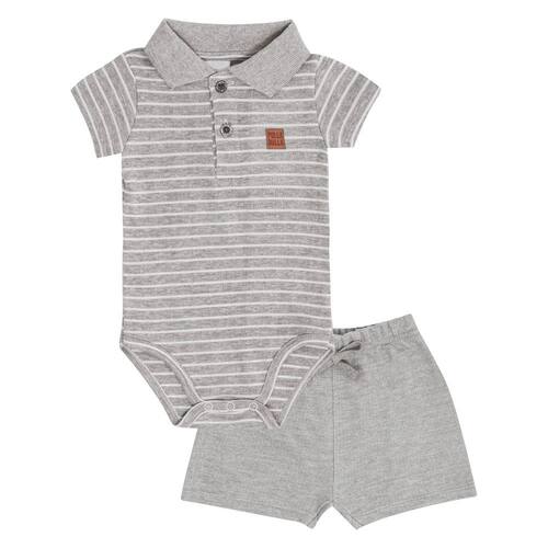 Conjunto baby charmoso e perfeito para acompanhar o dia a dia dos pequenos. Com o body confeccionado em suedine fio tinto listrado na cor mescla cinza, possuí gola polo e aplique termocolante frontal com identificação pulla bulla e botões de abertura na gola e entre as pernas. Já a bermuda piqueton na cor mescla cinza possuí elastano na cintura para faciliar a segurança e a movimentação do baby.