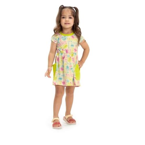Vestido manga curta canelado estampado Have Fun - Amarelo - 1
