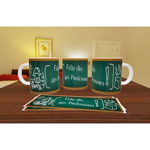 Caneca personalizada de porcelana de alto brilho, com interior e Alça branca Coleção dia dos Professores.