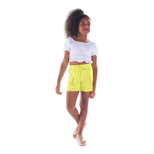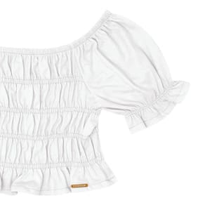As meninas vão amar combinar o lookinho! A blusa cropped infantil é confeccionada em tecido meia malha na cor branca com plaquinha de identificação Pulla Bulla na cintura. Partiu passear com as amigas?