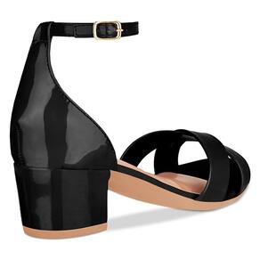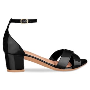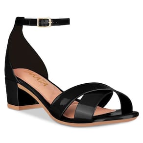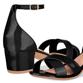 Sandália Feminina Salto Grosso Tiras Cruzadas Verniz - 34 - Preto