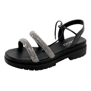 Tiras com Aplicação em Strass: As tiras decoradas com strass adicionam um brilho sofisticado ao modelo, trazendo um toque de glamour para seus looks mais despojados ou refinados.