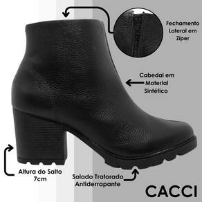 Durabilidade: Feita com materiais duráveis e resistentes, a Bota Cano Curto Salto Médio Cacci foi desenvolvida para oferecer longa durabilidade e acompanhar você em várias ocasiões.