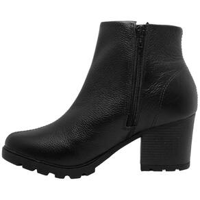 Bota Feminina Couro Tratorada Cano Curto Salto Médio Cacci - Preto - 38