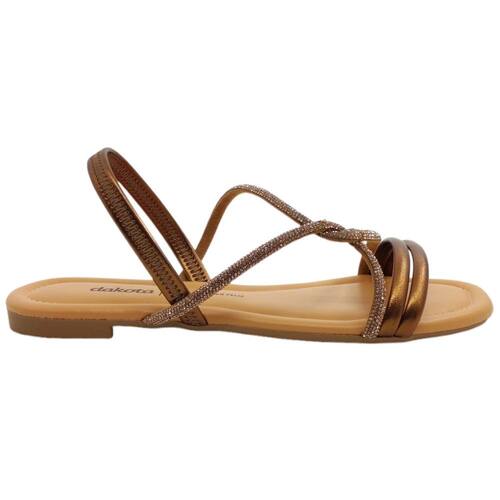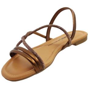 Sandália Rasteira Feminina Casual Dia a Dia Calce Fácil com Strass Dakota Y6977 - Marrom - 38