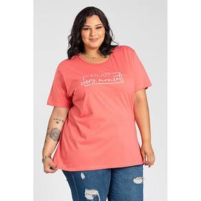 T-shirt Feminina Plus Size Malha Algodão Estampada "Enjoy" - Serena Coral - G10 -