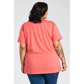 T-shirt Feminina Plus Size Malha Algodão Estampada "Enjoy" - Serena - Coral - G8