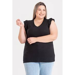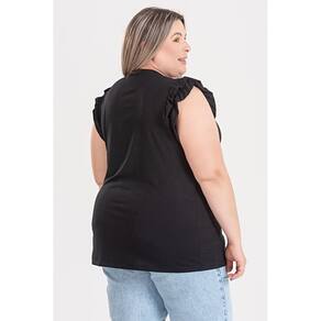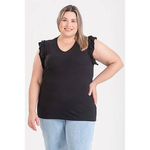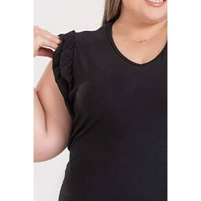 Blusa Feminina Plus Size Malha Viscose C/ Elastano Decote V Babados Ombro - Serena - Preto - G4