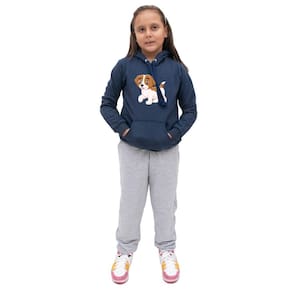 Conjunto Abrigo de Frio Com Calça Infantil Feminina Blusa Canguru Estampa de Cachorrinho Quentinho - 8 - Azul Marinho