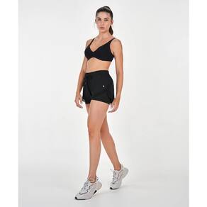 Short sobreposto é sinal de conforto e praticidade. O tecido de cima é leve, com visual transpassado e recortes em tule, trazendo charme para a peça. O short interno proporciona maior liberdade de movimento e funcionalidade, já que conta com bolso, ideal para guardar celular ou pequenos objetos.