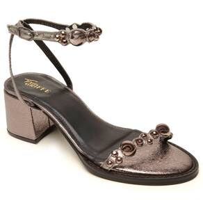 Sandália Couro Feminina Metalizado Salto Bloco Isadora Inox - Prata - 33