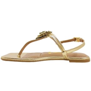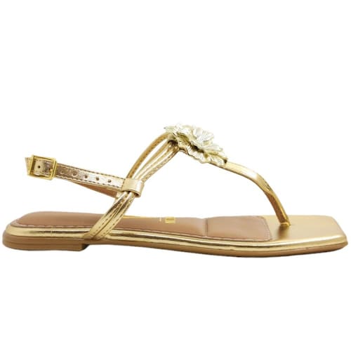 Com design minimalista destaca-se com uma elegante aplicação de flor metalizada, adicionando um toque de delicadeza ao visual. Confeccionada com material sintético de alta qualidade, a sandália oferece conforto e durabilidade. A palmilha macia proporciona sensação de leveza a cada passo, enquanto o salto rasteira, com solado antiderrapante, garante estabilidade. Com fechamento em fivela para ajuste perfeito, esta sandália é uma escolha versátil para dias ensolarados. Ideal para compor looks casuais ou sofisticados, esse modelo é a união perfeita de estilo e praticidade.
