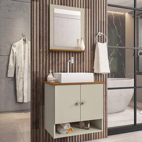 Material da espelheira: MDP de 12 mm no painel e 15 mm na prateleira com espelho de 03 mm de espessura;