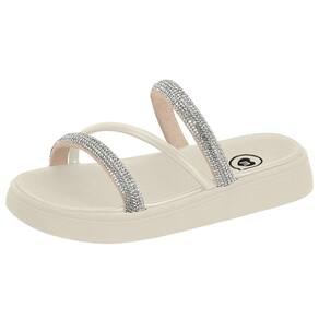 Para adicionar um toque de glamour ao visual, as tiras do chinelo são adornadas com strass delicados, que brilham sob a luz do sol. Combinando charme e sofisticação, as tiras proporcionam um ajuste confortável, garantindo que os pés fiquem seguros e bem acomodados.