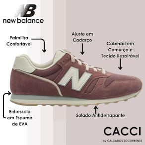 Detalhes de cores contrastantes nos cadarços, forro e borda do logotipo quebram o visual, e um logotipo N simplificado completa com um pouco do estilo clássico da marca. O 373 V2 New Balance é simplesmente refinado com uma parte superior semelhante a couro sintético, cores neutras e detalhes inspirados na herança.