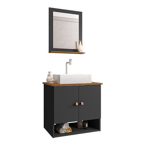 Material da espelheira: MDP de 12 mm no painel e 15 mm na prateleira com espelho de 03 mm de espessura;