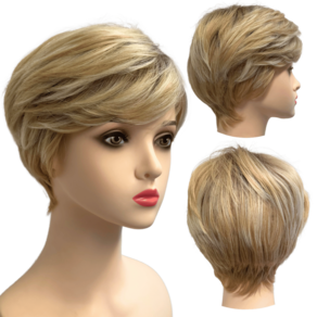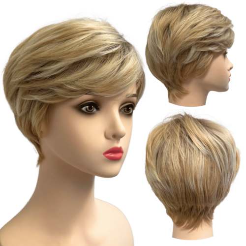Peruca curta com franja unissex orgânica lisa repicada - Cor: Loiro 10/18/613