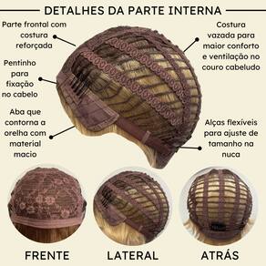 - Tamanho da peruca M (padrão) com alças internas ajustáveis.