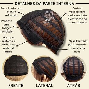 - Fibra orgânica premium; - 6cm de comprimento; - Aceita chapinha até 170º; - Possui três pentes internos para maior fixação; - Peso do produto 80gm em média; - Tamanho da peruca M (padrão) com alças internas ajustáveis.