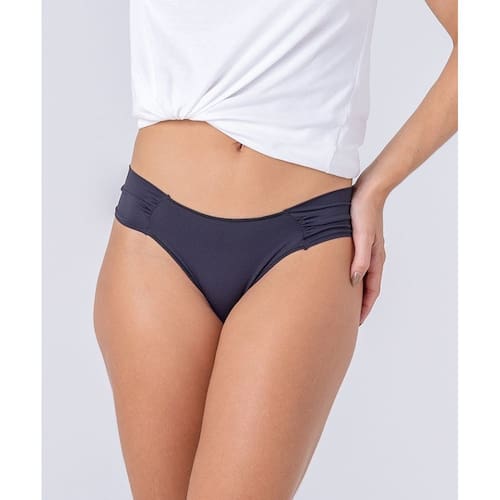 Calcinha fio dental duplo em algodão, lisa, com laterais drapeadas - Preto - G