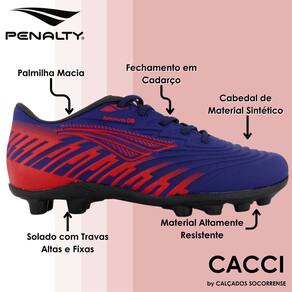 Desenvolvida pela Penalty, a chuteira Bravo Y-3, perfeita para os jovens atletas que buscam por qualidade e precisão durante suas partidas nos campos naturais. O calçado possui cabedal feito em material sintético, além de solado com travas altas e fixas.