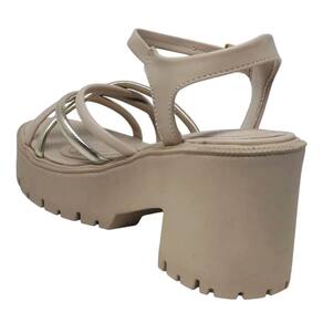 O fechamento prático no calcanhar oferece um ajuste firme e seguro, mantendo a sandália confortável e bem ajustada aos pés durante todo o tempo de uso.
