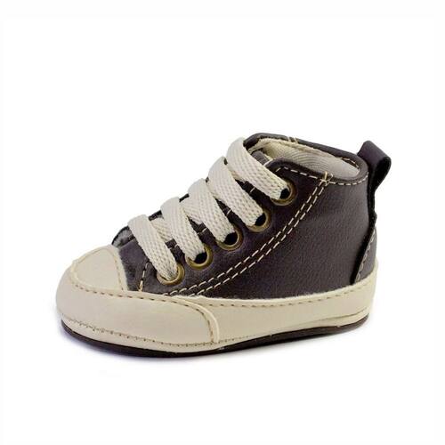 Sapatinhos Bebê-Tenis recém-nascido primeiros passos 14ao20 Forro tecido espumado 1101B - 14 - Marrom