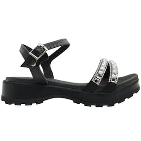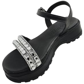 Sandália Infantil Menina Papete Casual Dia a Dia Escola Passeio com Pedraria Solado Trataorado Molekinha 2361.207 - Preto - 32
