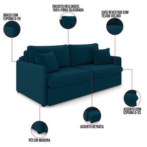 O Sofá Retrátil e Reclinável Maili 3 Lugares é a escolha perfeita para quem busca conforto e estilo em um só móvel. Com 194 cm de largura, revestido em tecido Veludo, ele se destaca por sua aparência moderna e aconchegante. Produzido em madeira de lei (eucalipto), devidamente tratada e aparelhada, com reforços de cantoneiras e chapas em MDF, ideal para suportar o uso diário e manter a integridade do sofá. A estrutura metálica do mecanismo proporciona resistência e longa durabilidade, permitindo que o sofá se transforme em cama de forma segura e com facilidade. Para proporcionar conforto máximo, o assento é composto por espumas D33, molas ensacadas, molas espirais e manta acrílica, apoiadas em cintas metálicas, enquanto o encosto conta com cintas metálicas e 100% fibra siliconada, oferecendo um toque macio e relaxante. Os braços são feitos com espuma D26 para garantir um apoio confortável. O encosto reclinável possui sistema de catraca com 3 posições, permitindo ajustar o sofá de acordo com suas preferências de conforto. As almofadas soltas decorativas, além de realçar o estilo do sofá, oferecem flexibilidade para ajustar o conforto e personalizar o visual. Os pés em madeira na cor tabaco completam o design sofisticado, dando um toque elegante ao ambiente. Este maravilhoso sofá é ideal para momentos de descanso, seja assistindo a um filme ou simplesmente relaxando após um dia longo. Transforme seu espaço com o Sofá Maili. Aproveite agora!